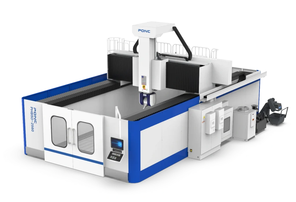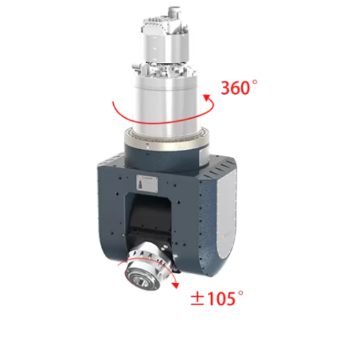 Visoke performanse 5-osne izvedbe Opremljen sa A/C glodačkom glavom, Opremljen sa 2-osnom glavom visokih performansi, motorizovanim vretenom velike brzine HSK A63, koji ostvaruje višesmernu i višeuglovnu obradu, kako bi zadovoljio zahteve obrade visoke glatkoće različitih delova specijalnog oblika.